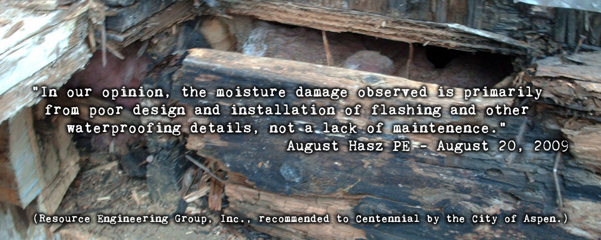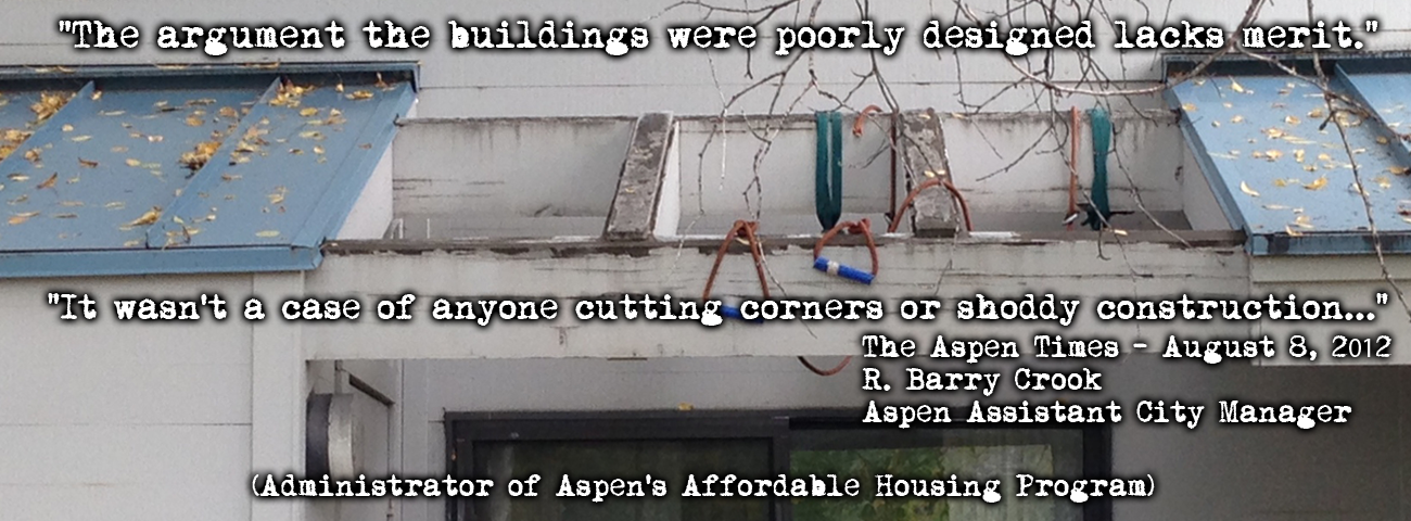 Attempts have been made to collaborate with the local government entities who administer Aspen’s housing program under the assumption that they have a stake in sustaining Centennial as their largest affordable, deed-restricted property and a community asset. In response, City staff members have advised elected officials to not provide any assistance. Their stated reasons, supported by the original developer and fed to local press, are that Centennial owners "deferred maintenance" to cause the structural issues, ignored problems once they were identified, underfunded capital reserves and repairs, have greatly exaggerated the severity of problems and cost of repairs, and are more than capable of taking on a $3-$4 million special assessment with no increase in equity or resale value. None of this is actually true as the information and documentation in this website reveals.
